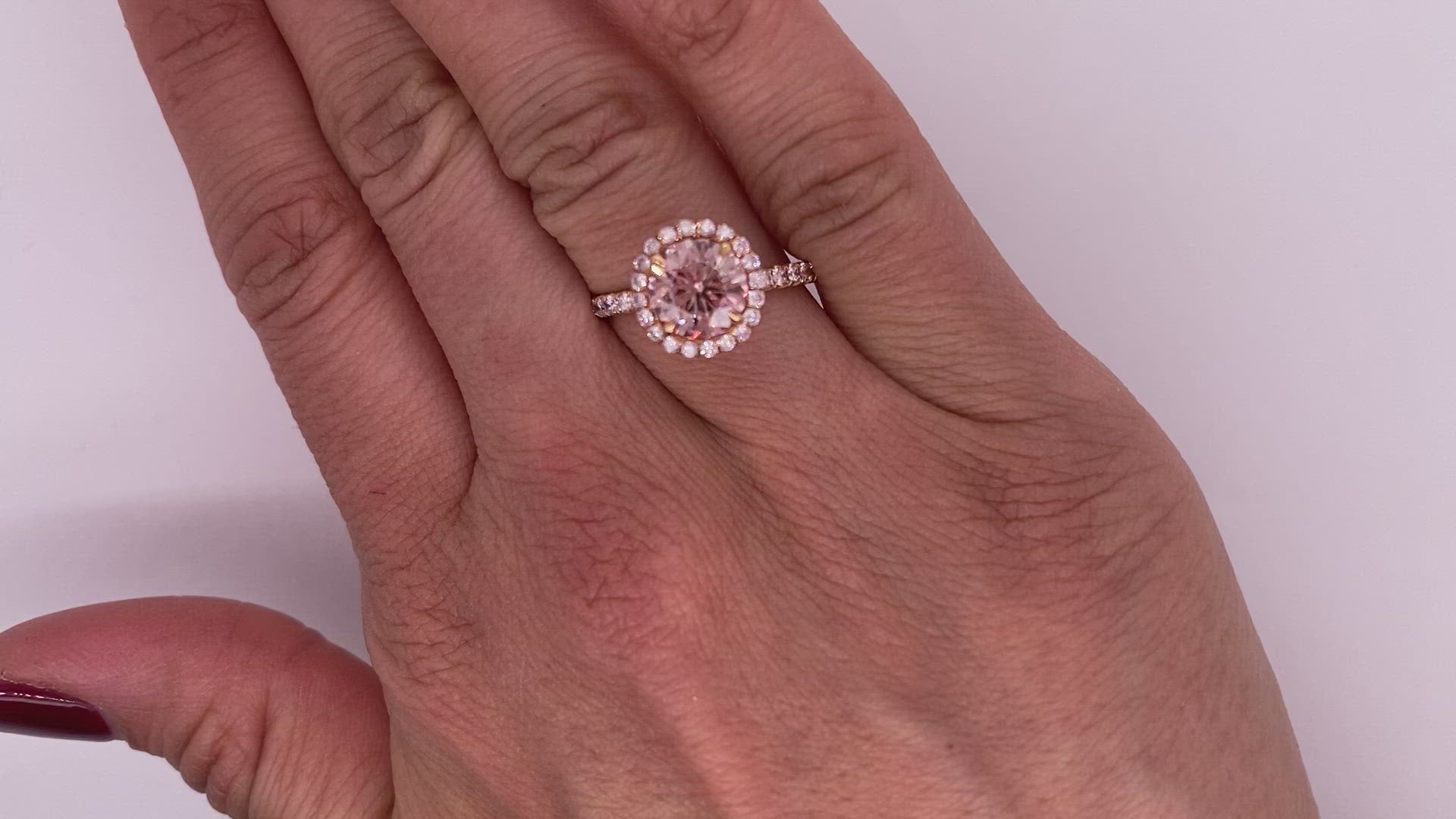 LUNE -FANCY INTENSE ORANGY PINK HALO PINK DIAMOND ENGAGEMENT RING 18K ROSE GOLD BY MIKE NEKTA