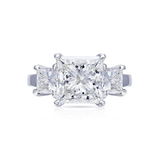 LUW 4 Carat Princess Cut Lab Grown Diamond Engagement Three-Stone Ring IGI Certified