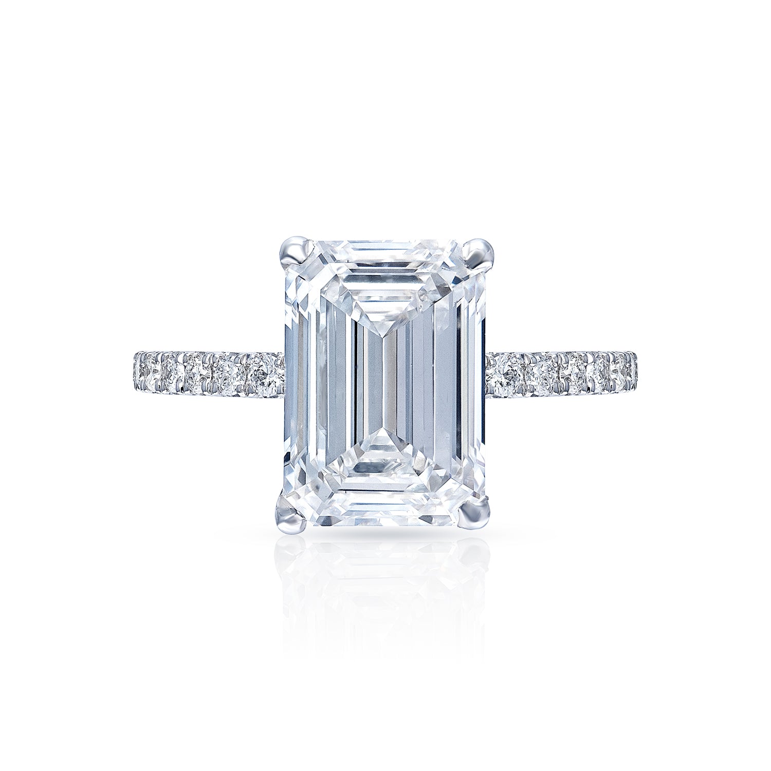 Also available with larger diamond : 5.00 Carat E-Color VS1 IGI-Certified Emerald Cut Lab-Grown Diamond Engagement Ring in Platinum (with 0.41 ctw Side Diamonds)