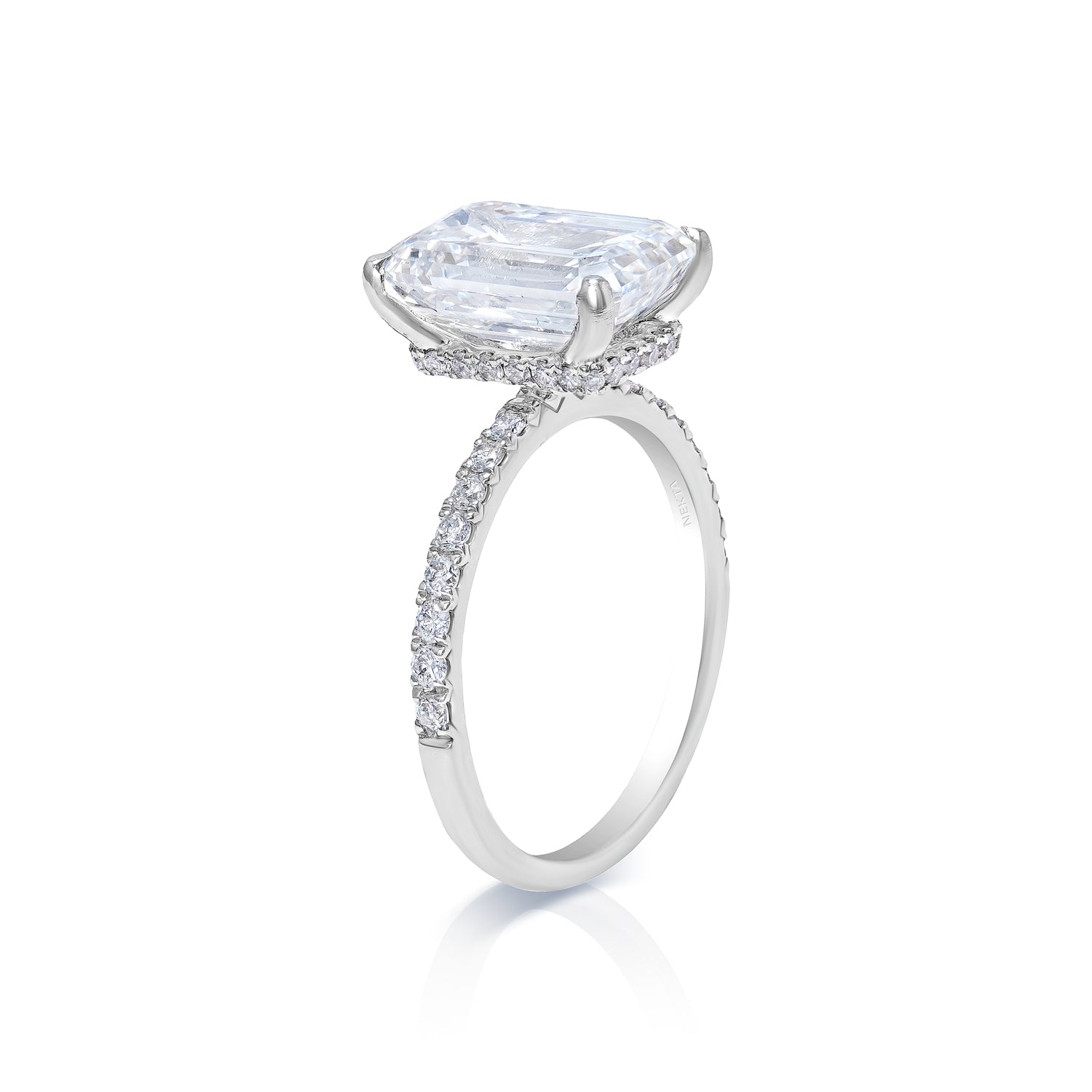 Lylah 4 Carat F VS2 Emerald Cut Lab Grown Diamond Engagement Ring in Platinum