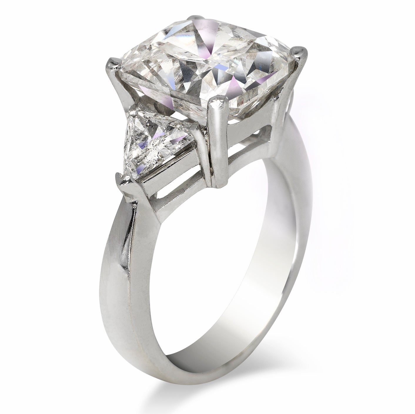 Style: 4 PRONG CUSHION, THREE STONE TRILLION DIAMOND RING