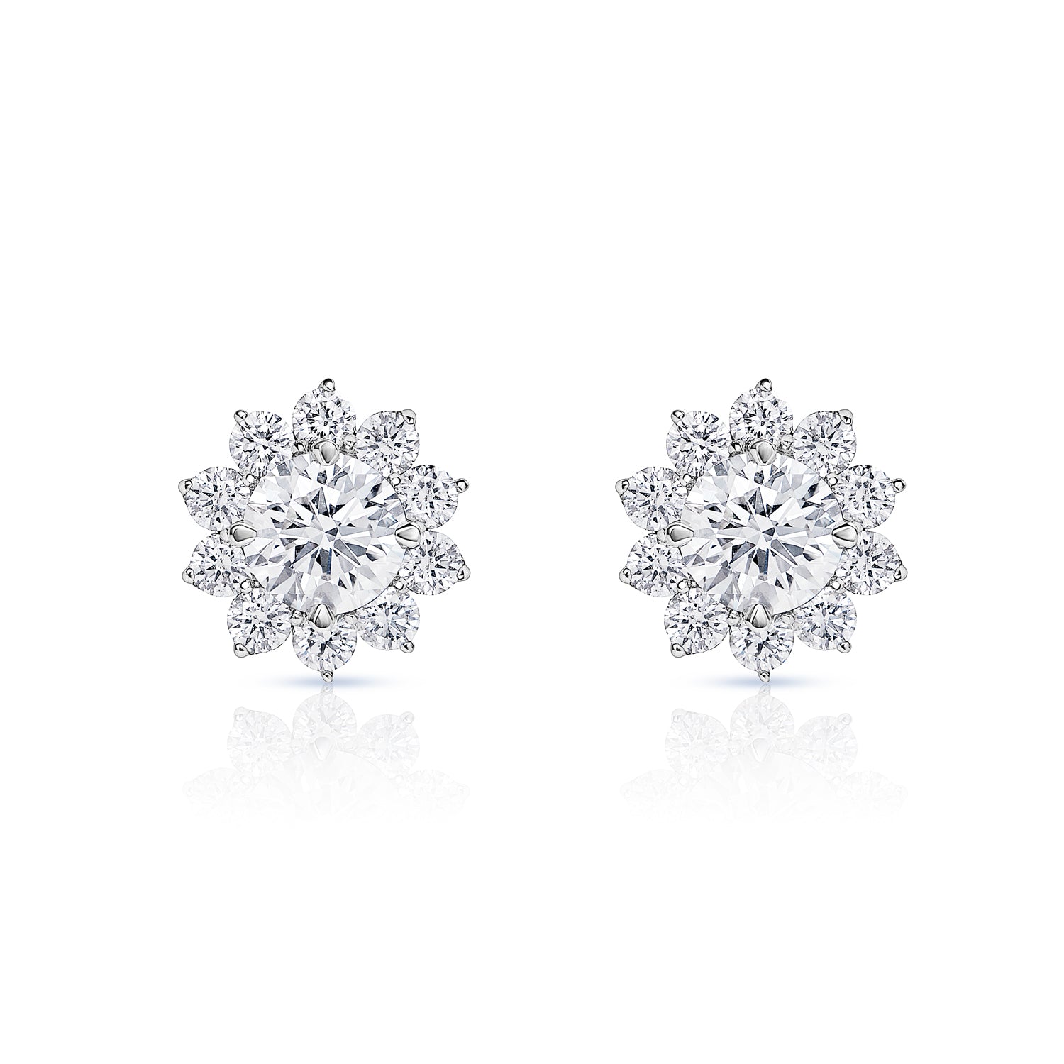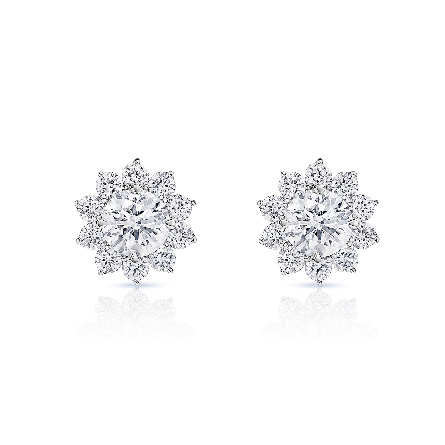 Maria 3 Carat Round Brilliant Lab Grown Diamond Stud Earrings in 18k White Gold