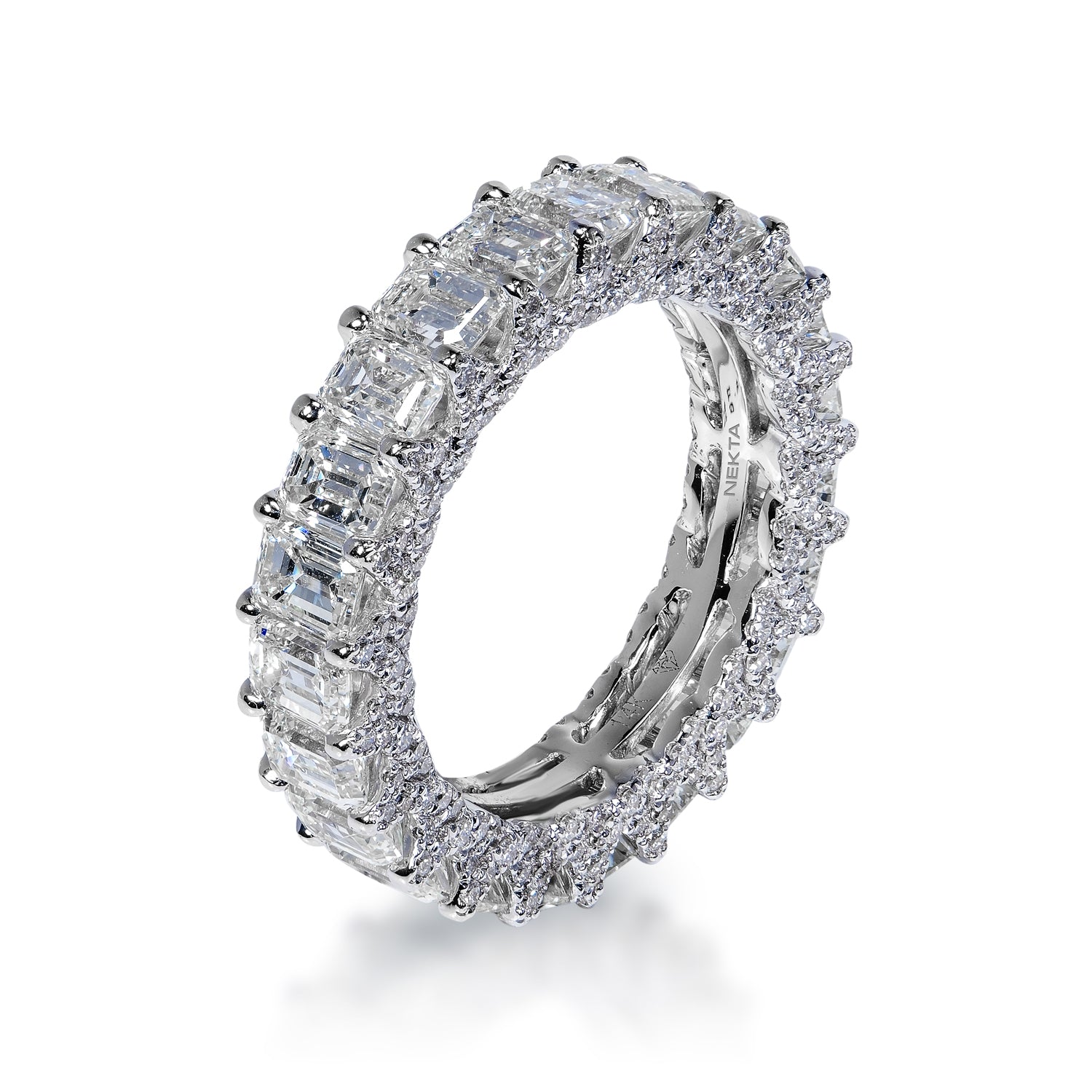 Megan 5 Carat Emerald Cut Diamond Eternity Band in 14 Karat White Gold Shared Prong