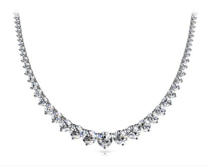 The MIST Riviera Graduated Necklace features 117 round brilliant natural diamonds weighing a total of approximately 25 carats, set upon Platinum in a 3 prong setting.