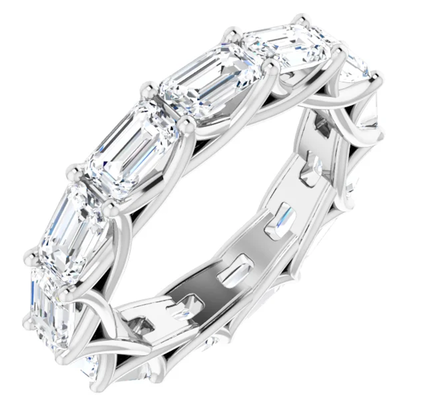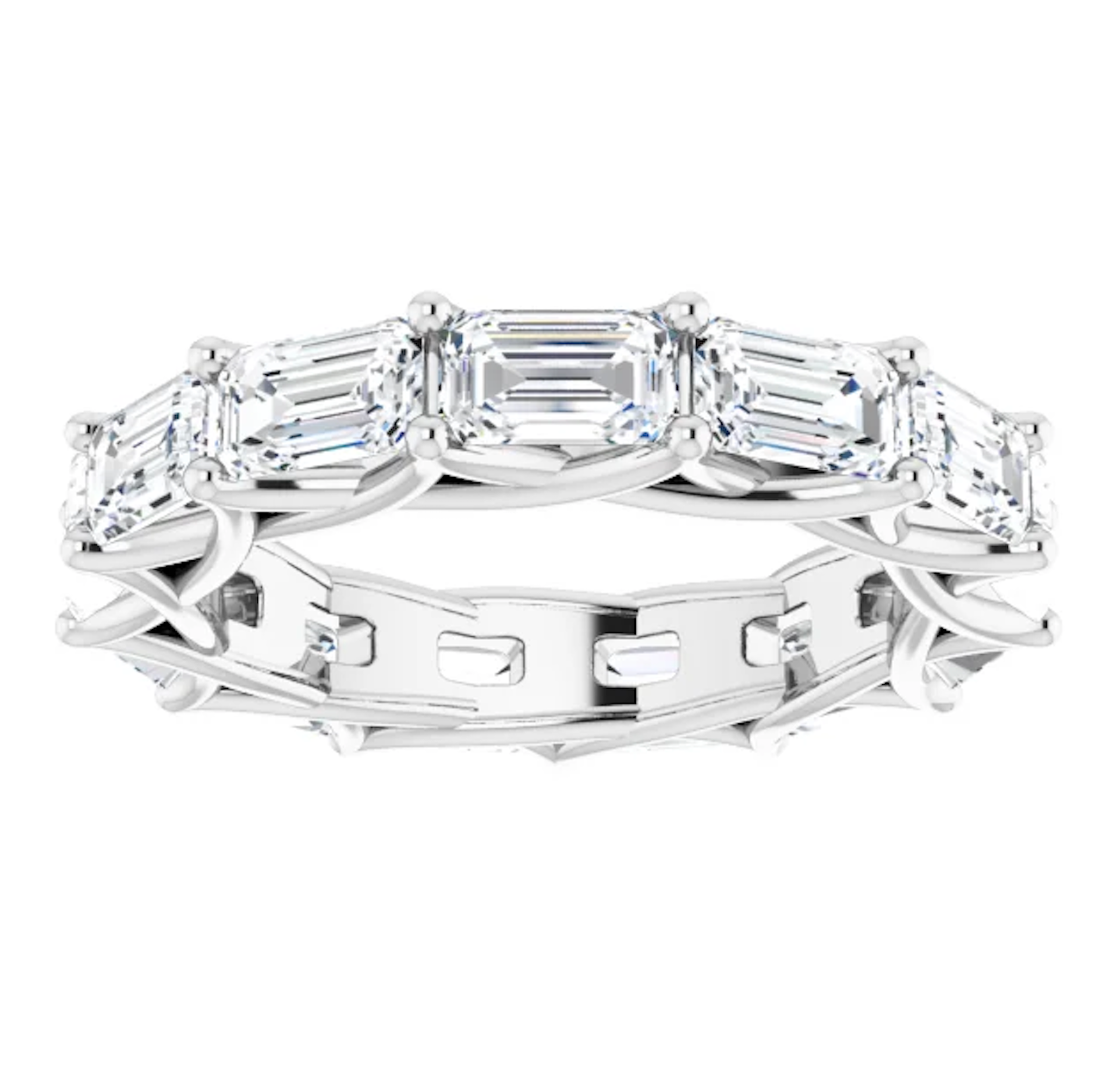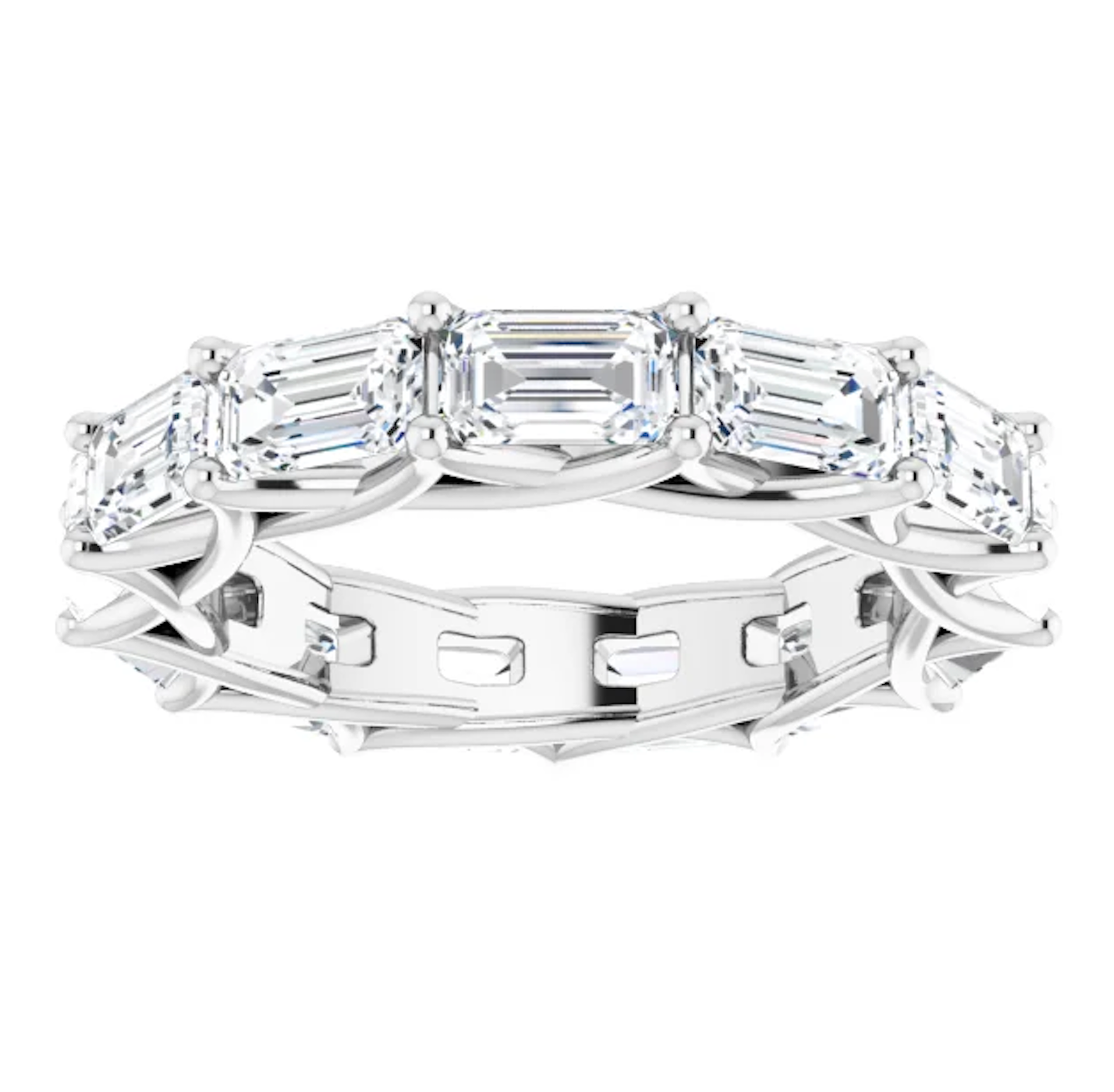 MUZU 5 Carat Emerald-Cut Diamond Eternity Ring in Platinum 30 pointer G Color VS1 Clarity Shared Prong Band By Mike Nekta NYC