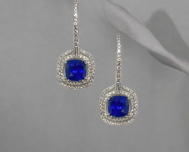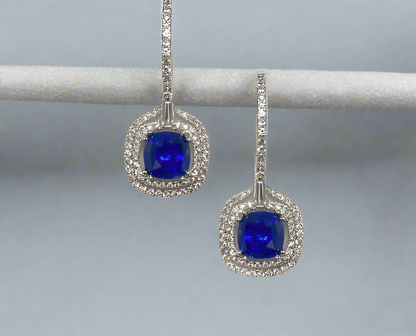Nila 2.26 Carats Cushion Cut Sapphire Gemstone Drop Earrings in 18K White Gold By Mike Nekta NYC