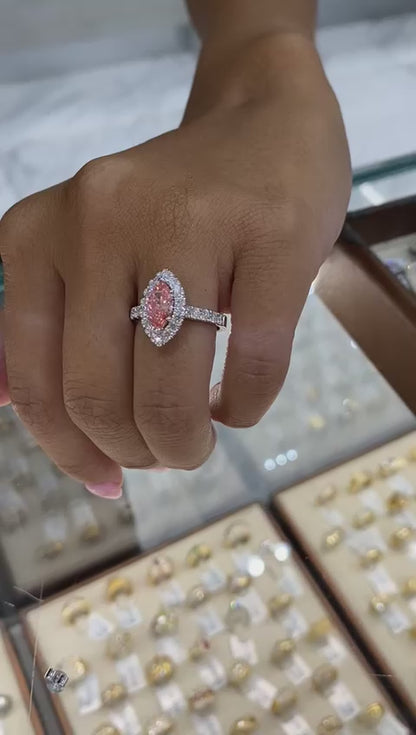 Noemi 2 Carat Fancy Vivid Pink VS1 Marquise Cut Diamond Engagement Ring in 18k White Gold