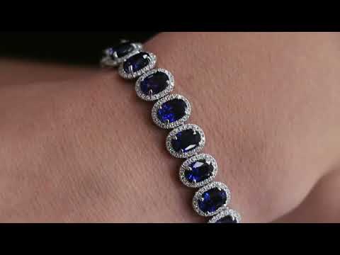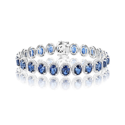 Raina 26 Carat Oval Cut J'adore Blue Sapphire Bracelet in 18k White Gold