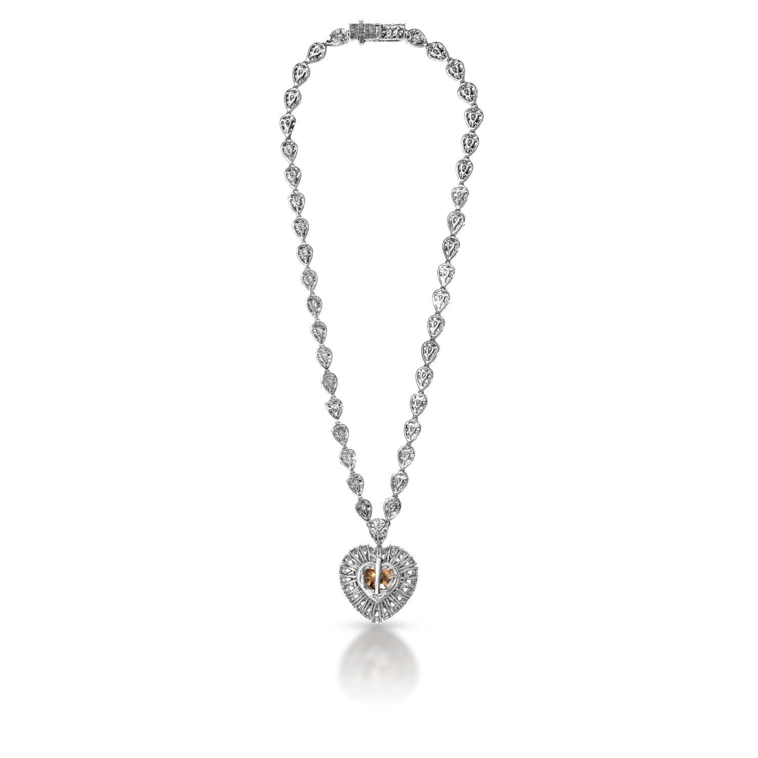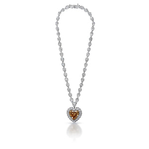Remy 50 Carat Brown Heart Necklace Brilliant Diamond Pendant Necklace in 14k White Gold