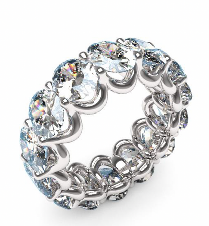 SAINT 14 Carat Oval-Cut Diamond Eternity Ring in Platinum GIA Certified F Color VS Clarity Shared Prong Band By Mike Nekta NYC Size 7