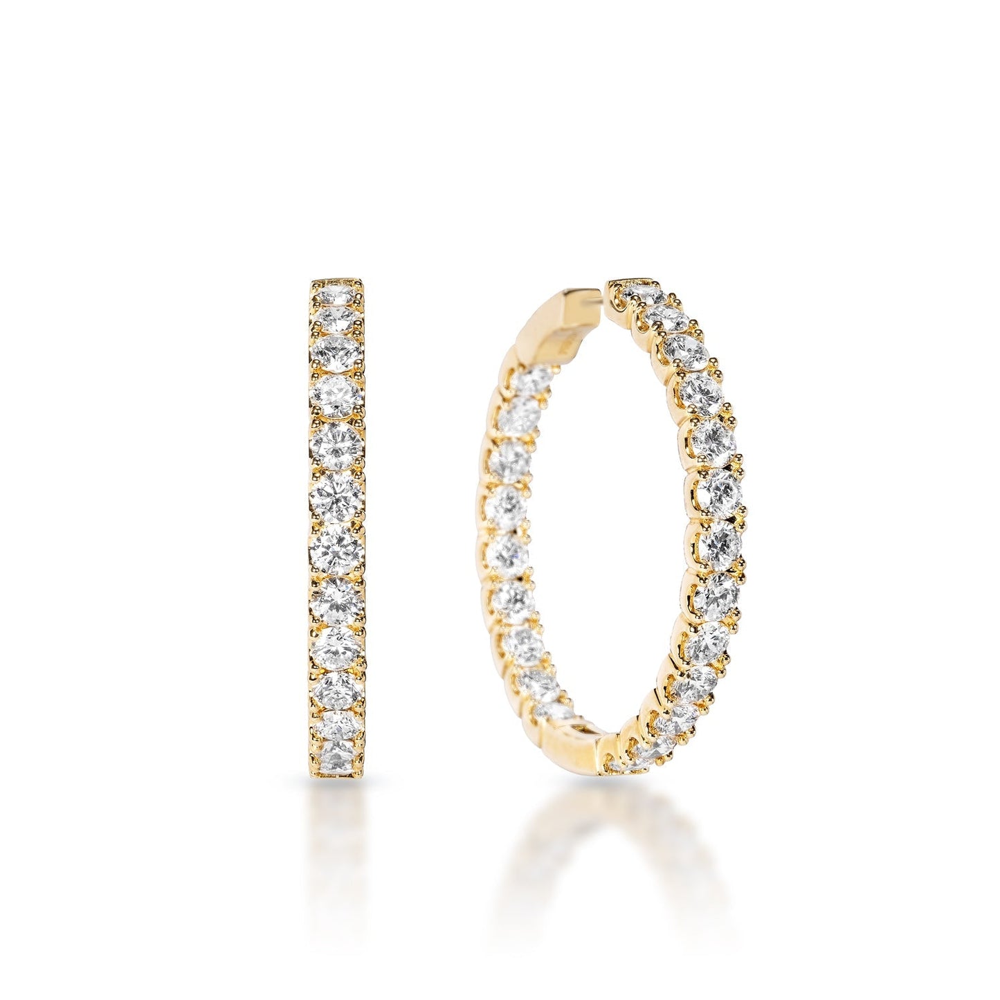 Serenity 1.5 inch 9 Carat Round Brilliant Diamond Hoops Earrings in 14k Yellow Gold