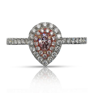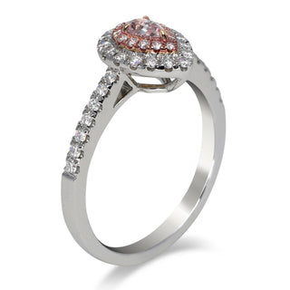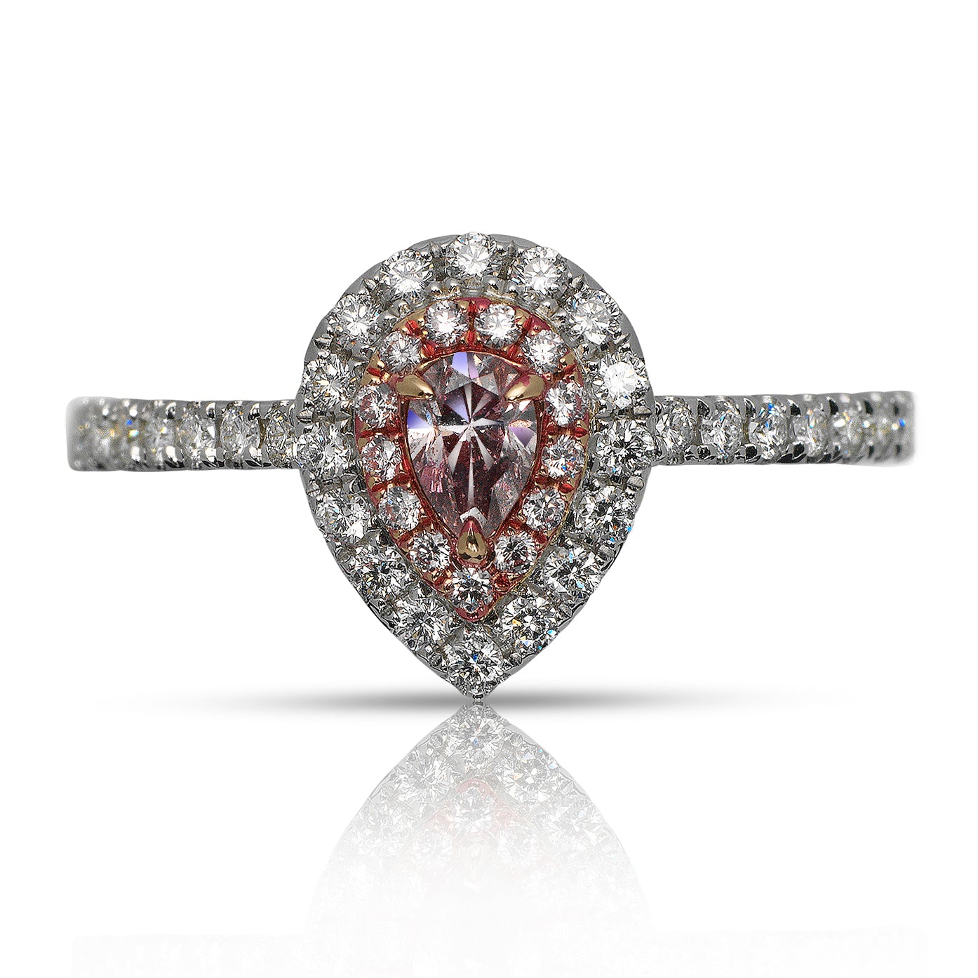 SWAN HALO PEAR SHAPE FANCY PINK DIAMOND ENGAGEMENT RING 18K ROSE WHITE GOLD GIA CERTIFIED 0.15 CT FIPP BY MIKE NEKTA