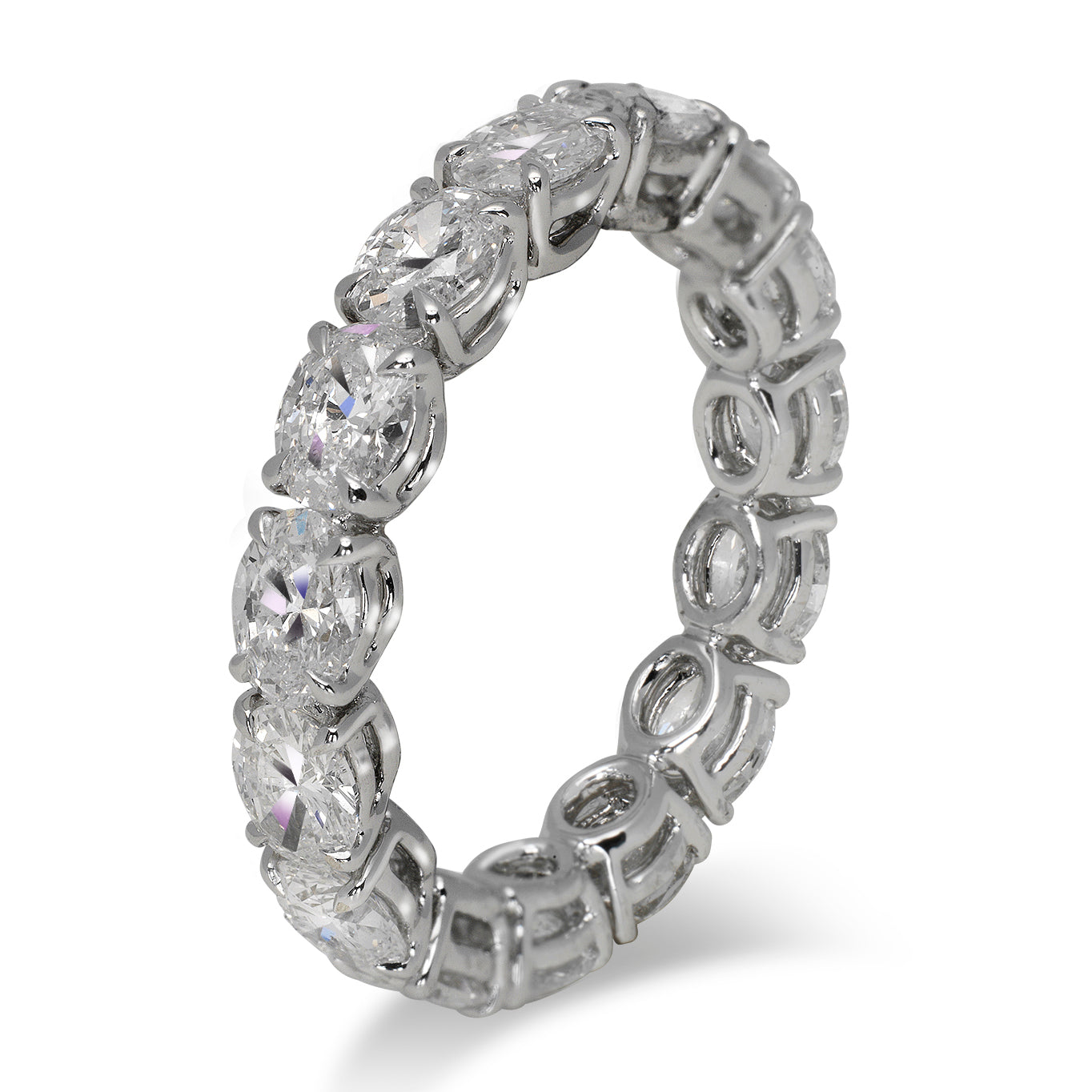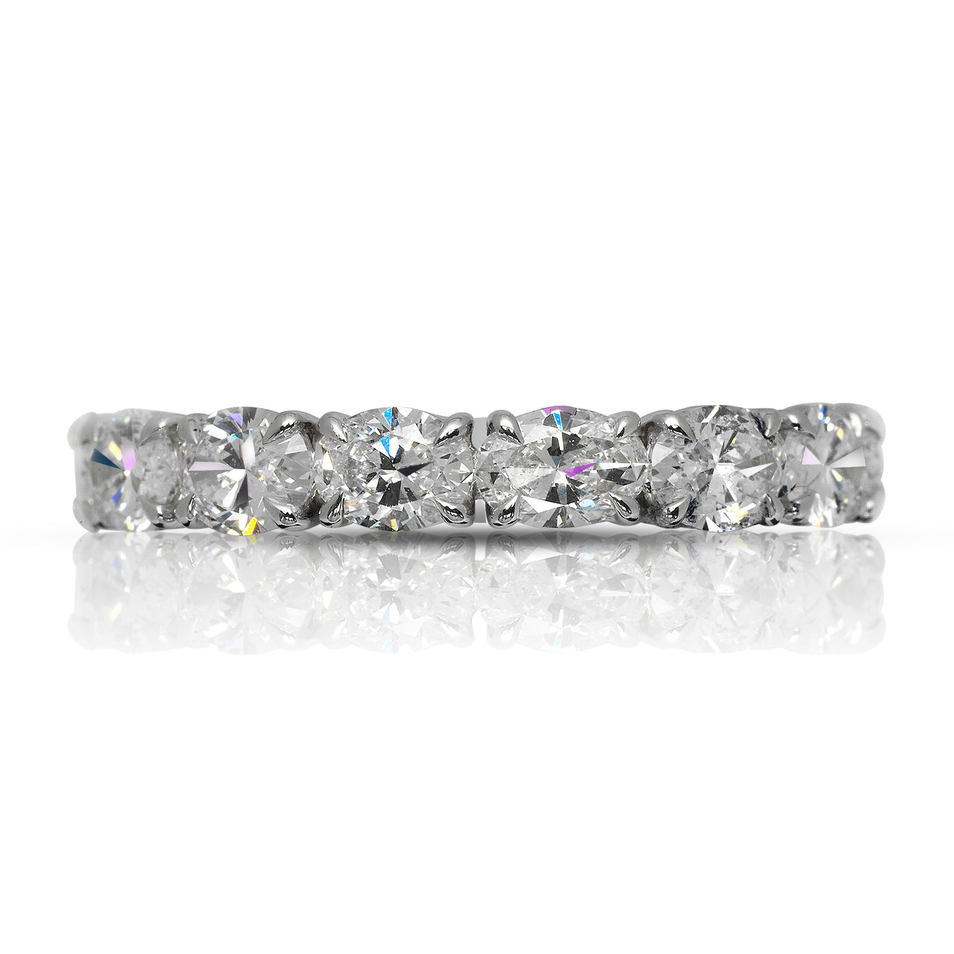 The TALI wedding eternity band features 15 oval brilliant 20 pointer diamonds weighing a total of approximately 3 carats, horizontal set in 18k White Gold.