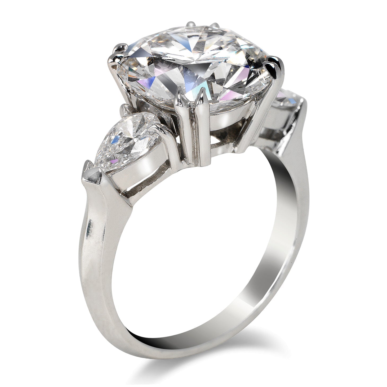 VERA -8 CARAT ROUND CUT THREE STONE PEARL DIAMOND ENGAGEMENT RING BY MIKE NEKTA