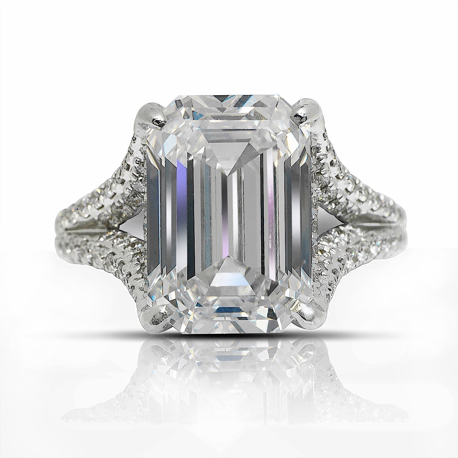 WAN -7 CT EMERALD DIAMOND ENGAGEMENT RING 18K WHITE GOLD BY MIKE NEKTA