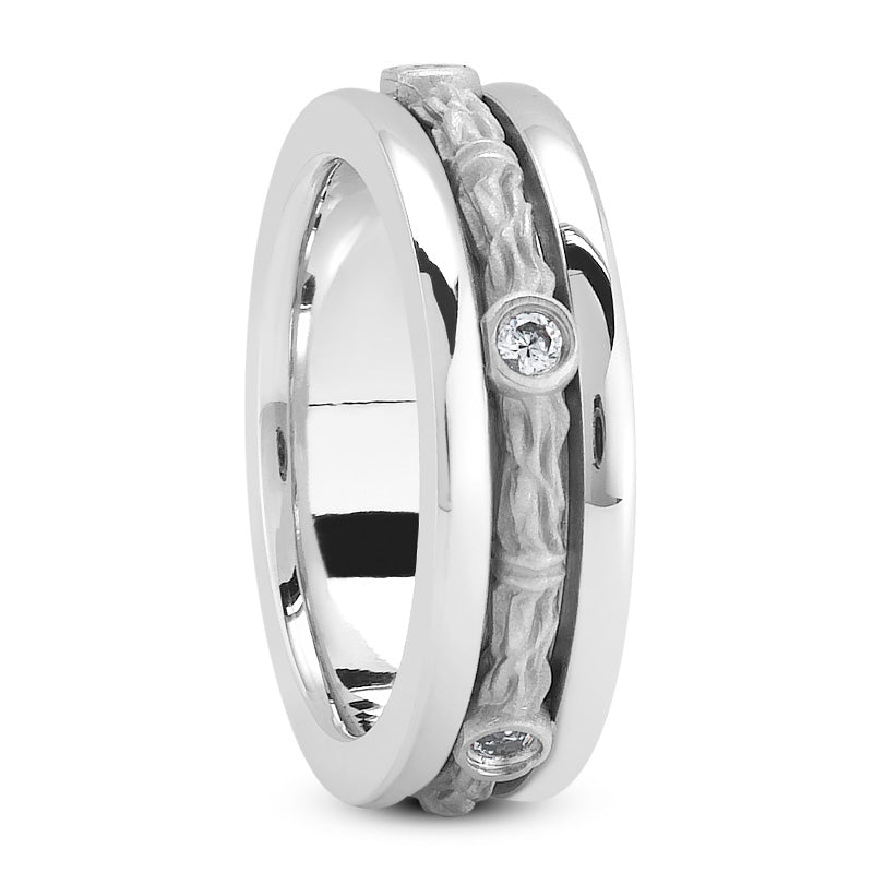 Bark Men's Diamond Wedding Ring in Platinum By Mike Nekta NYC, 6MM