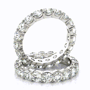 The Xena wedding eternity band features 16 round brilliant 30 pointer diamonds weighing a total of approximately 4.9 carats, U-Shape Shared setting in the metal of your choice.