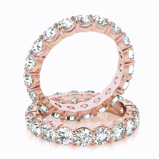 The Xena wedding eternity band features 18 round brilliant 30 pointer diamonds weighing a total of approximately 5.4 carats, U-Shape Shared setting in the metal of your choice.