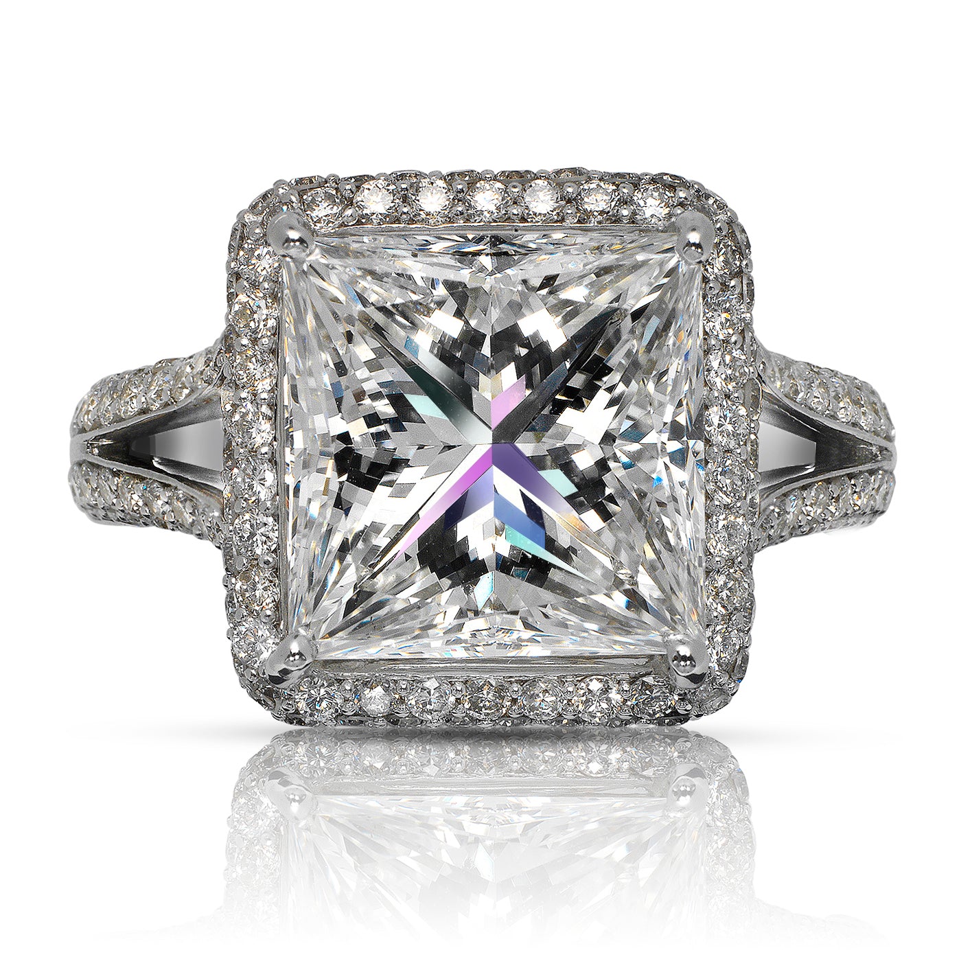YALE 7 Carat Princess Cut G Color VS2 Clarity Halo Diamond Engagement Ring in 18K White Gold GIA CERTIFIED 7 ct G VS2 BY MIKE NEKTA