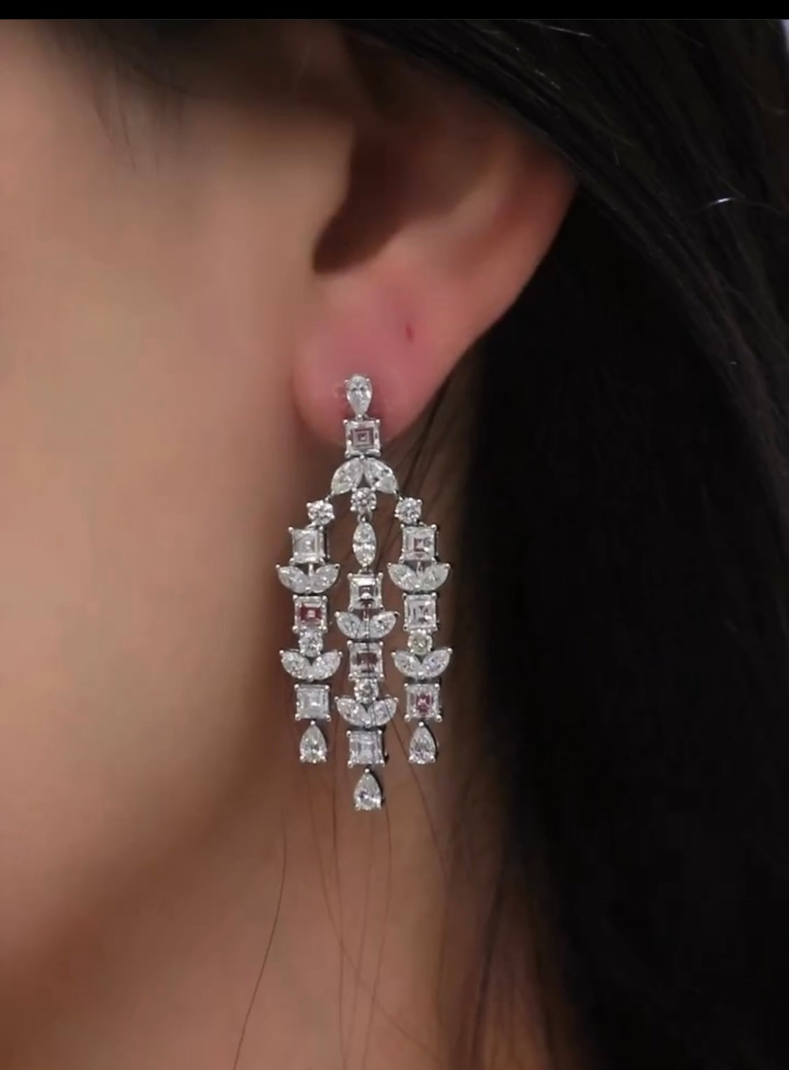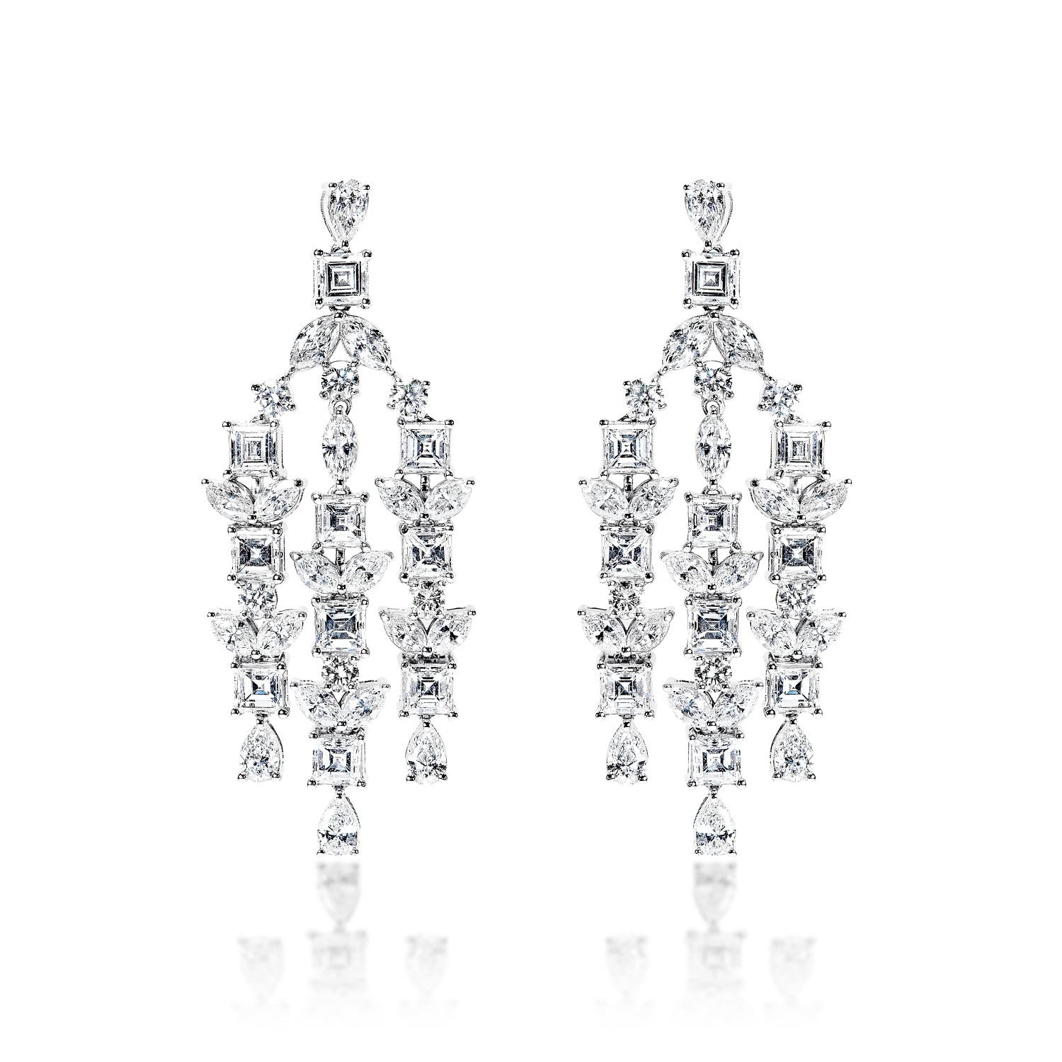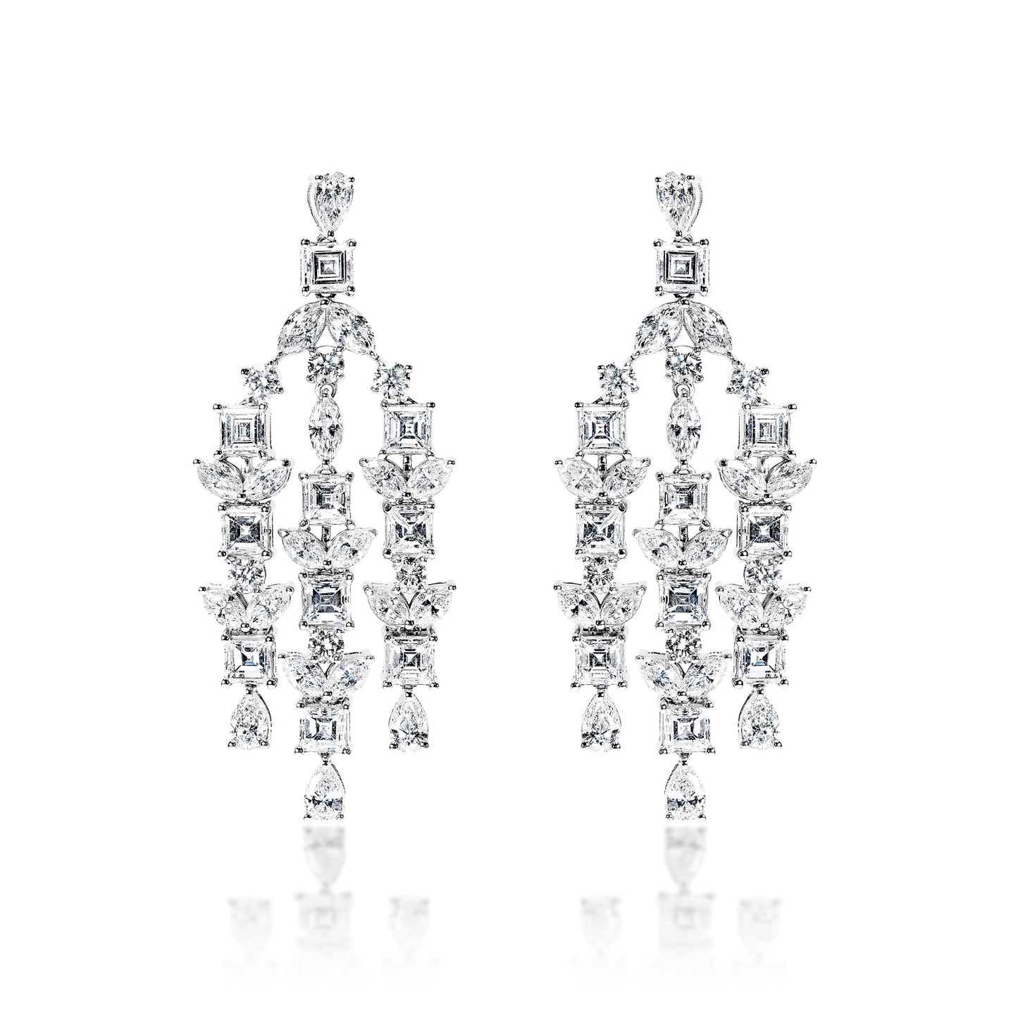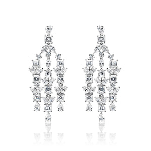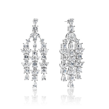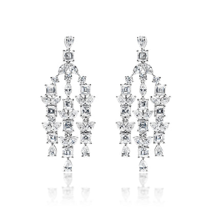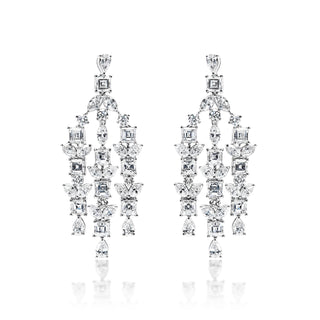 Zariah 8 Carat Combine Mix Shape Diamond Chandelier Earrings in 14k White Gold